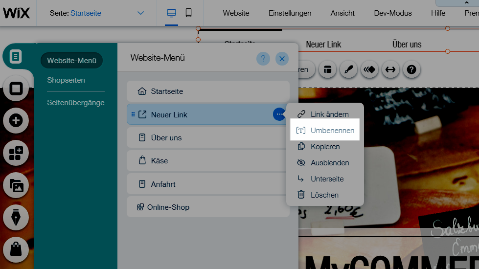 Das horizontale Menü mit Kategorien ermöglicht es Ihren Kunden, die gesuchten Produkte einfach zu finden. Wenn Sie ein horizontales Menü mit den Kategorien zum MyCOMMERCE Store auf Ihrer Wix-Seite hinzufügen möchten, folgen Sie bitte den untenstehenden Anweisungen. Sie müssen die Links in Ihrem Wix-Menü erstellen und die Kategorien aus deinem Shop dort verbinden.