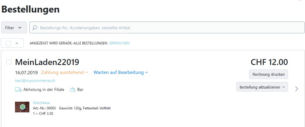 11. Jetzt MyCOMMERCE Konto → Verkäufe → Bestellungen enthält diese Bestellung: